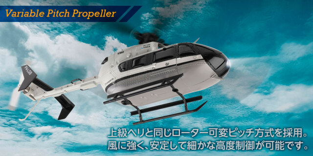 ●上級ヘリと同じローター可変ピッチ方式を採用。安定して細かな高度制御が可能です。