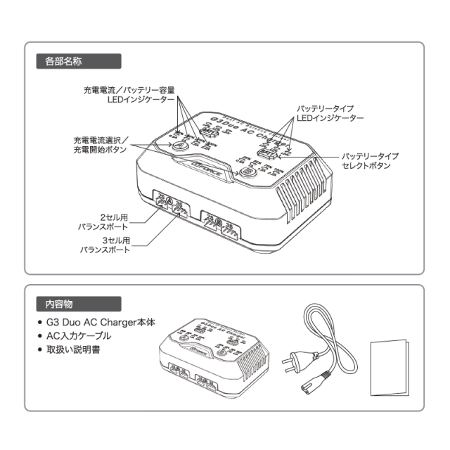 AC100Vから2~3セルのLiPo/LiFe/LiHVバッテリーを2本同時に急速充電!G3 DUO AC CHARGER【G0318】